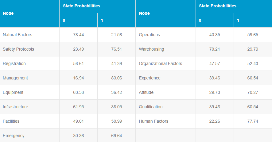 The table below shows an article, identifying factors and their causal relationship, based on 348 past accidents for the period 1990 to 2018. The results indicate human & management factors having, the high probability of an accident. In this study the relevant portion is the Registration and Management probability which can be minimized with AI automation.