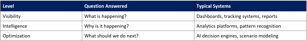 Most digital initiatives stop at the first level. The gap between levels two and three is where margin is won or lost.
