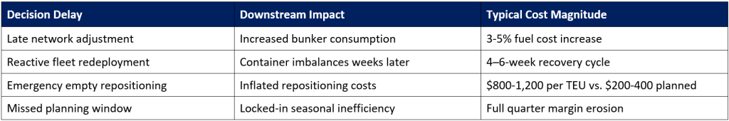 In container shipping, time is not just money it is margin. Delayed or suboptimal decisions compound rapidly across the network: